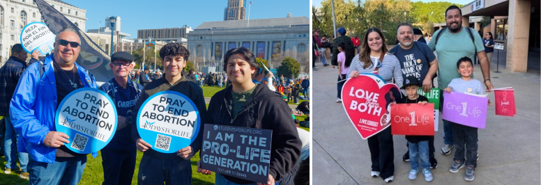In January local Catholics joined the Universal Church in praying in a special way for the unborn and an end to the tragedy of abortion. On January 24 members of the parish community of San Secondo D’Asti traveled to San Francisco for the annual West Coast Walk for Life (left). That same day several parish groups (right) from the diocese and others in Respect Life ministry headed west for the annual OneLife LA Walk for Life. What a powerful witness for the dignity of every human life!